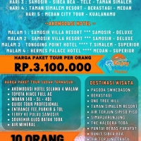 Paket Tour Danau Toba 3 Hari 2 Malam Paket Tour Danau Toba 3 Hari 2 Malam - Paket Medan Danau Toba Taman Simalem Resort 3 Hari 2 Malam dikemas dengan harga murah meriah dengan kwalitas pelayanan dijamin terbaik. Medan adalah Ibu kota Sumatera Utara, ...